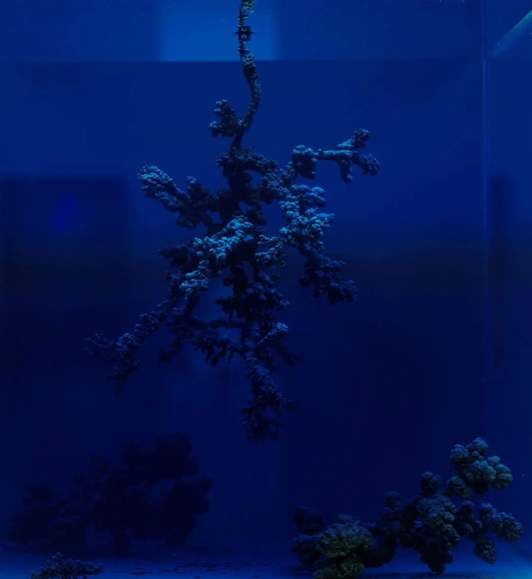 Chemical Garden, 2021/2025, Sodium silicate, copper, nickel, cobalt, chromium, manganese, iron, zinc salts, 55 1/2 x 11 3/4 x 11 3/4 in. (141 x 30 x 30 cm)