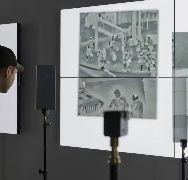 Of het nu via film, videosculptuur, theater, grafische kunst of andere media is, Emmanuel Van der Auwera neemt ons mee naar de kern van het beeld en stelt onze visuele geletterdheid ter discussie: hoe werken beelden van de hedendaagse massamedia in op verschillende doelgroepen en met welk doel? Hoe bepalen bestaande codes en conventies de manier waarop gebeurtenissen worden gekaderd en in ons collectieve geheugen worden opgenomen? Hoewel hij ons niet dichter bij een monolithische waarheid brengt, construeert Van der Auwera nieuwe paradigma's voor het lezen van beelden en het begrijpen van onze relatie daarmee. In 2012, een keerpunt in zijn praktijk, begon hij werken te maken die reageerden op wat hij zag als ‘een paradigmaverschuiving’, aangewakkerd door de groei van sociale media, en die de relatie tussen de waarde van het beeld en de ‘waarde van emoties binnen het beeld’ ondervroegen. In deze nieuwe visuele economie is de toeschouwer ook het spektakel geworden, waarbij wordt gehandeld in de authenticiteit van hun ervaring en onze sublieme fascinatie voor dingen die ons angst aanjagen, walging opwekken of in vervoering brengen. Zijn proces van het creëren van een boeiende visuele ervaring die de kijker uit zijn passiviteit haalt, toont het risico aan van een verdere transformatie van de werkelijkheid in een simulatie. In navolging van Susan Sontag zijn deze voorstellingen een middel om zaken ‘echt’ (of ‘echter’) te maken die bevoorrechten en mensen die zich veilig voelen liever negeren. Van der Auwera's werk reflecteert op deze ketens van productie en consumptie, en op de verantwoordelijkheid die inherent is aan het kijken.